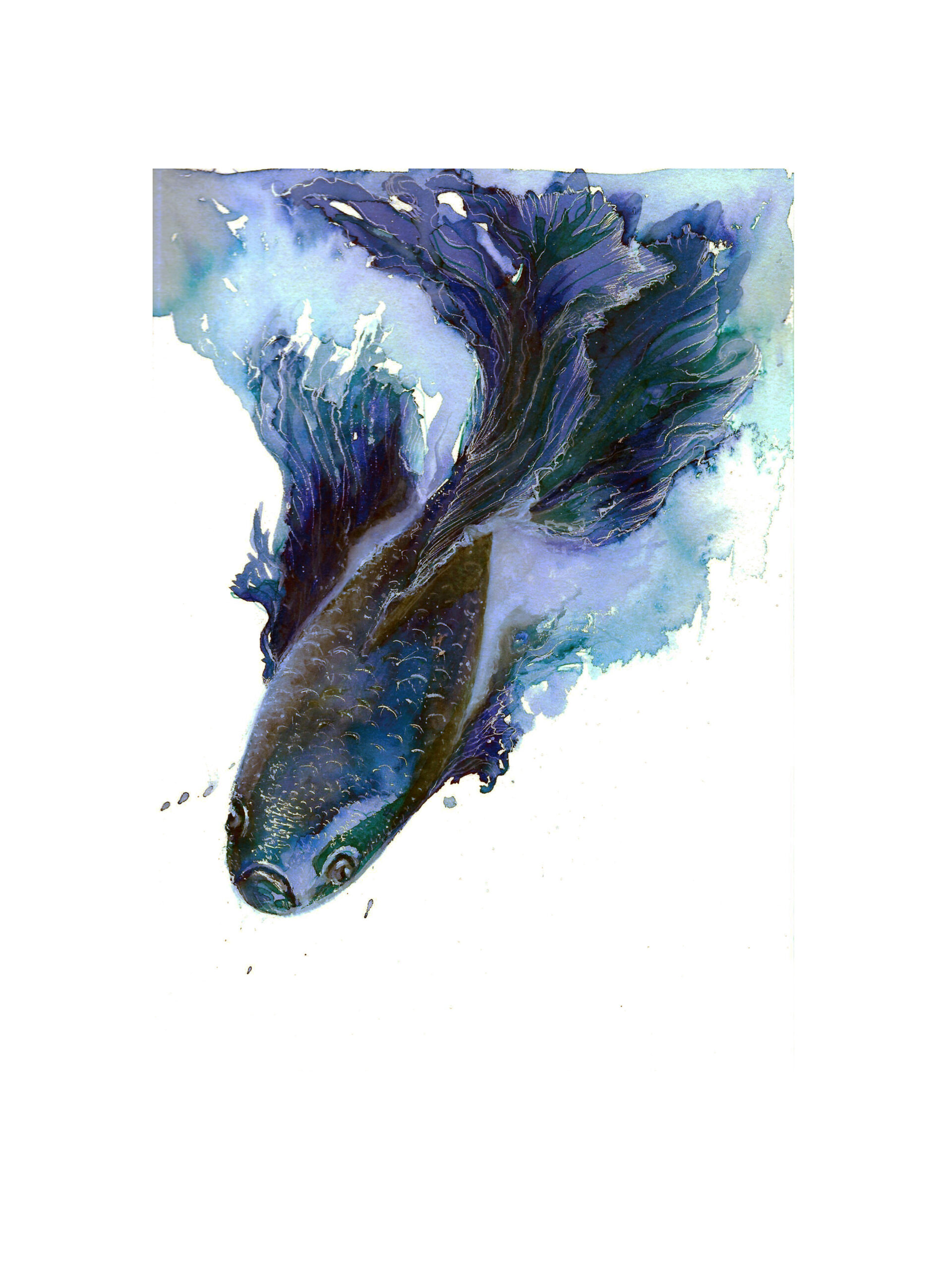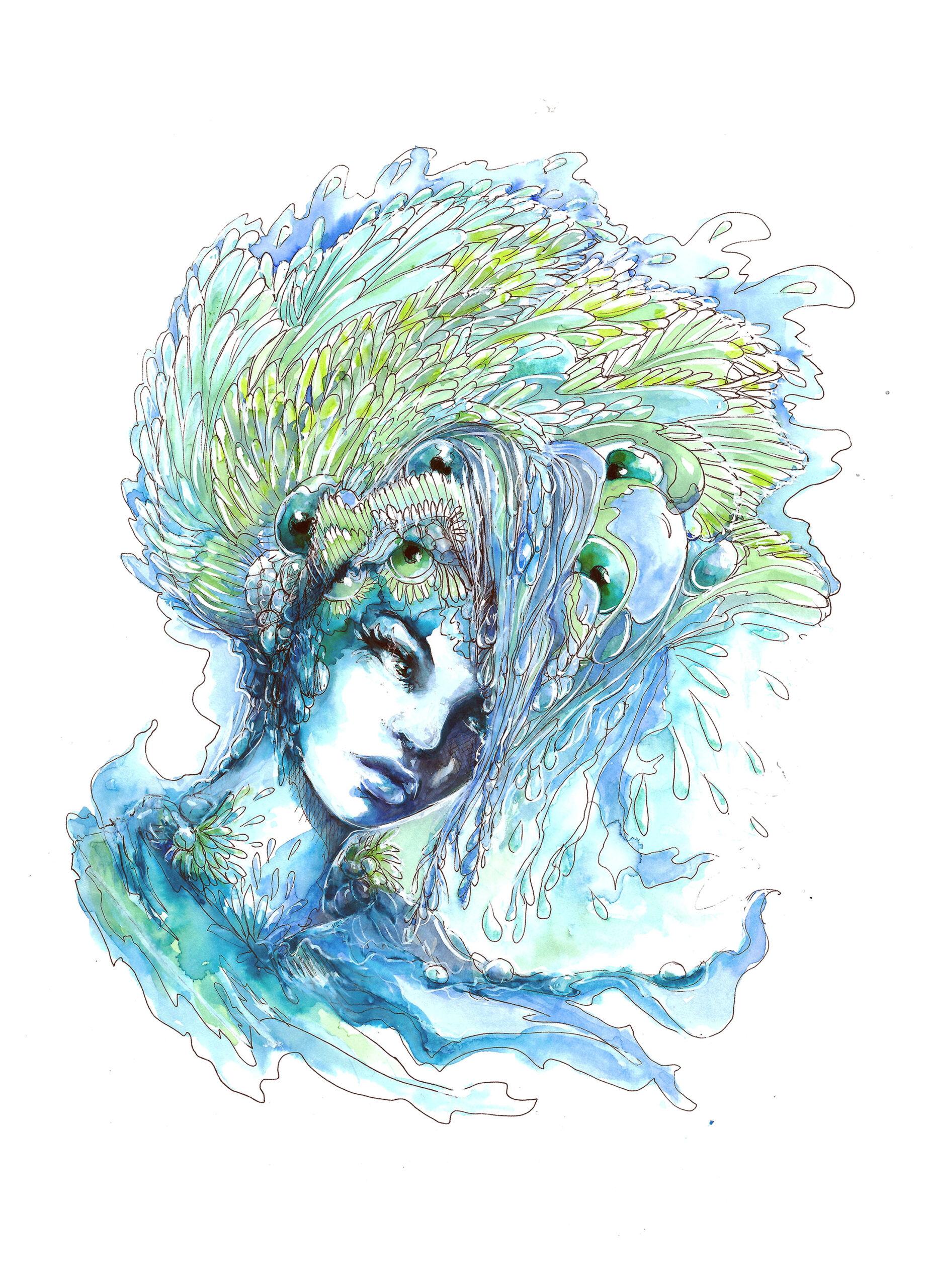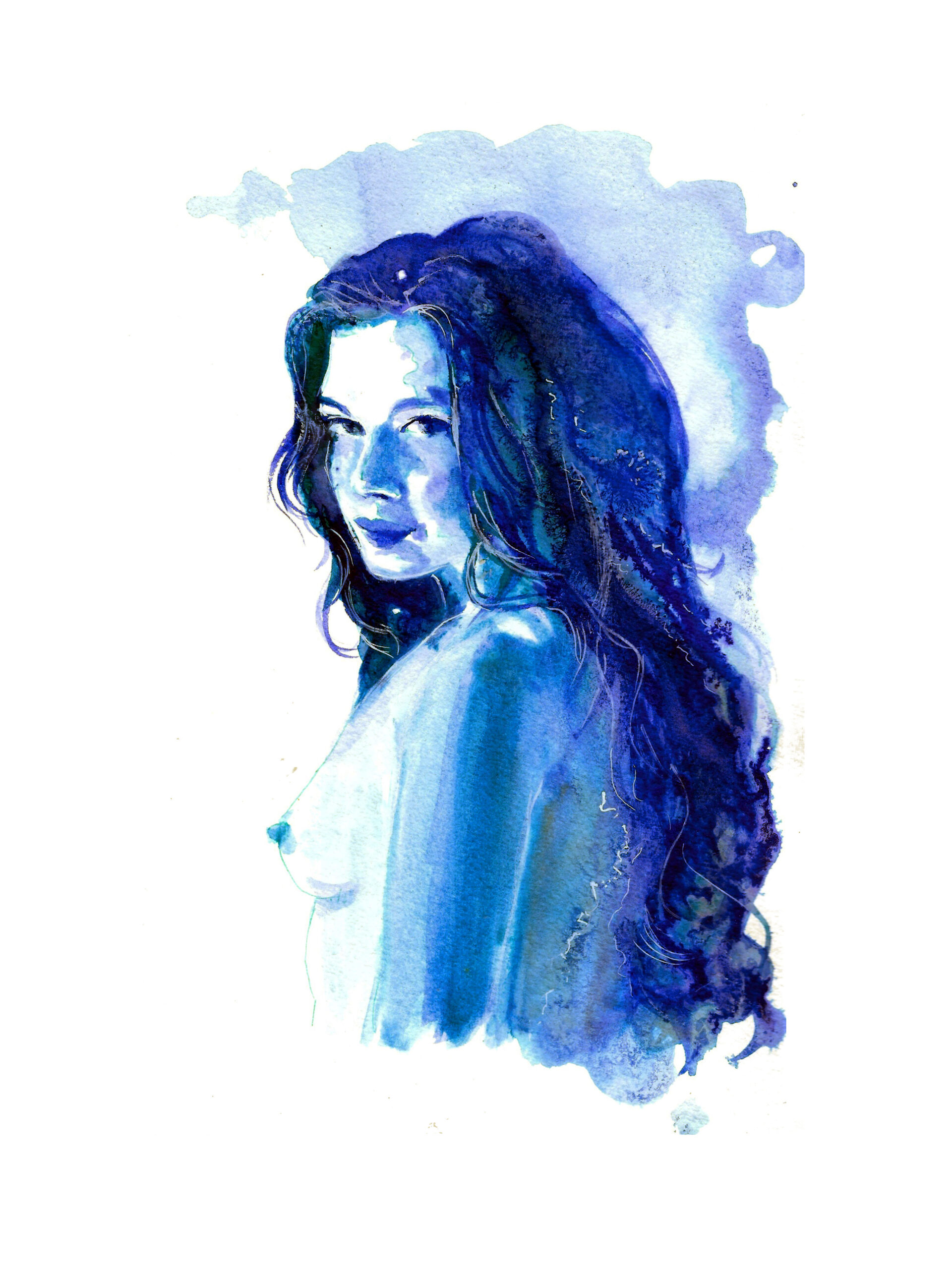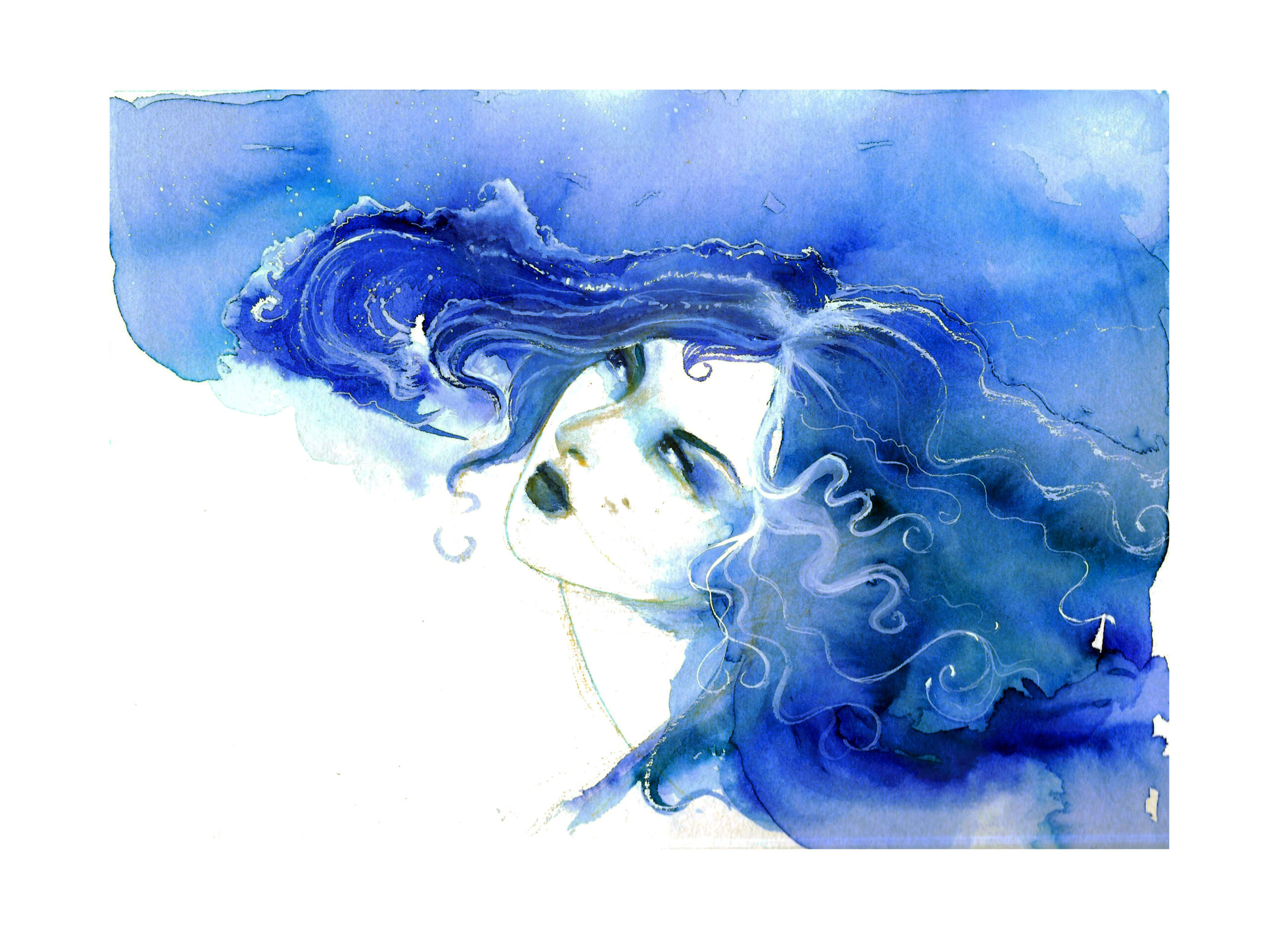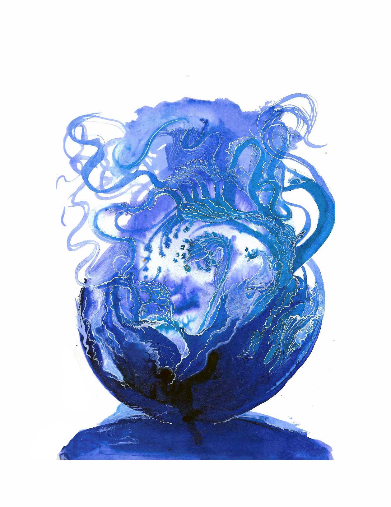 C’est une série expérimentale, que j’ai réalisée en utilisant de l’encre bleu de chine. J’ai choisi une technique humide qui laisse diffuser et s’emmêler les nuances de bleu, au gré du hasard….
