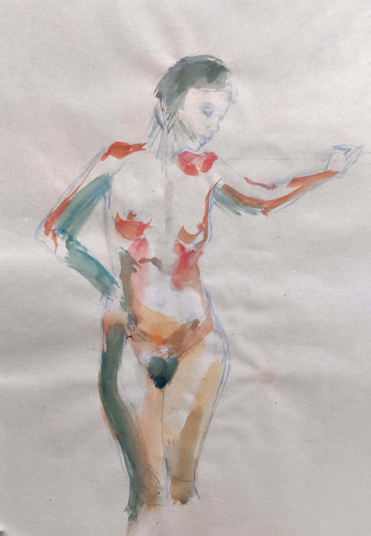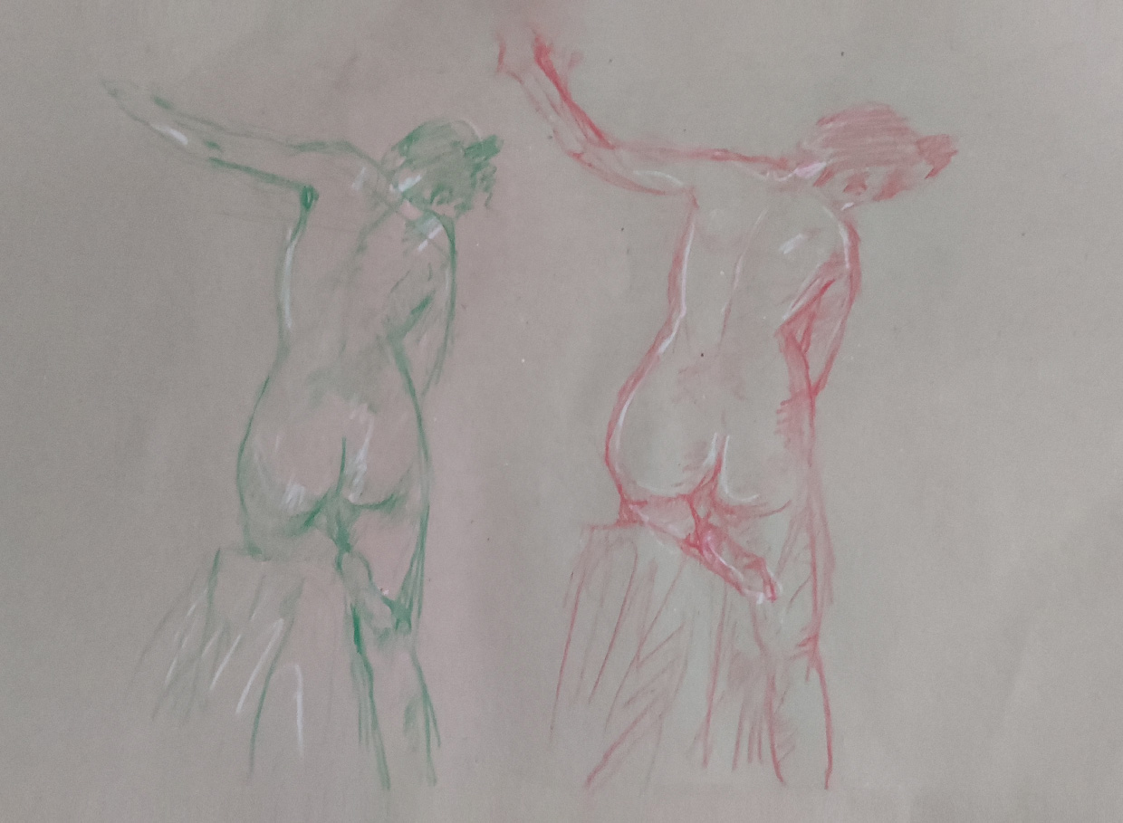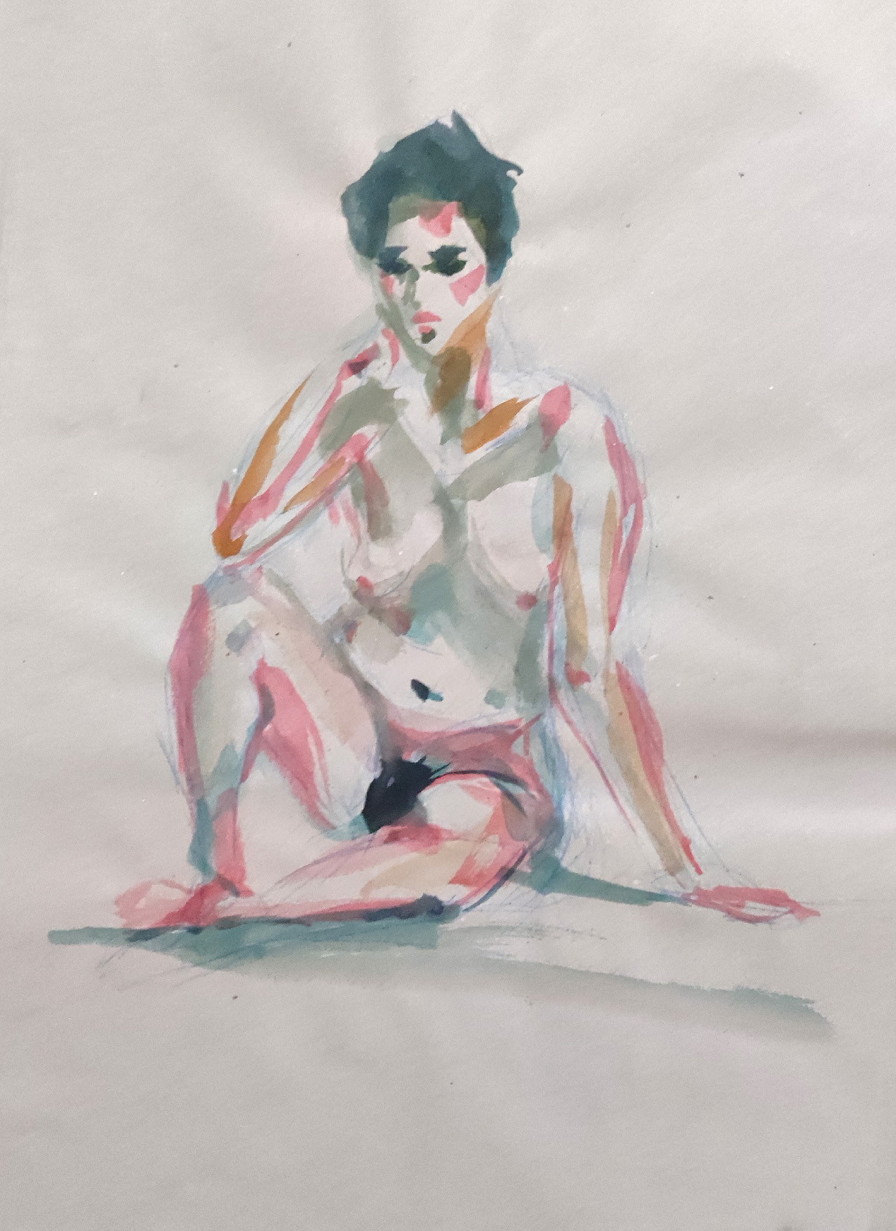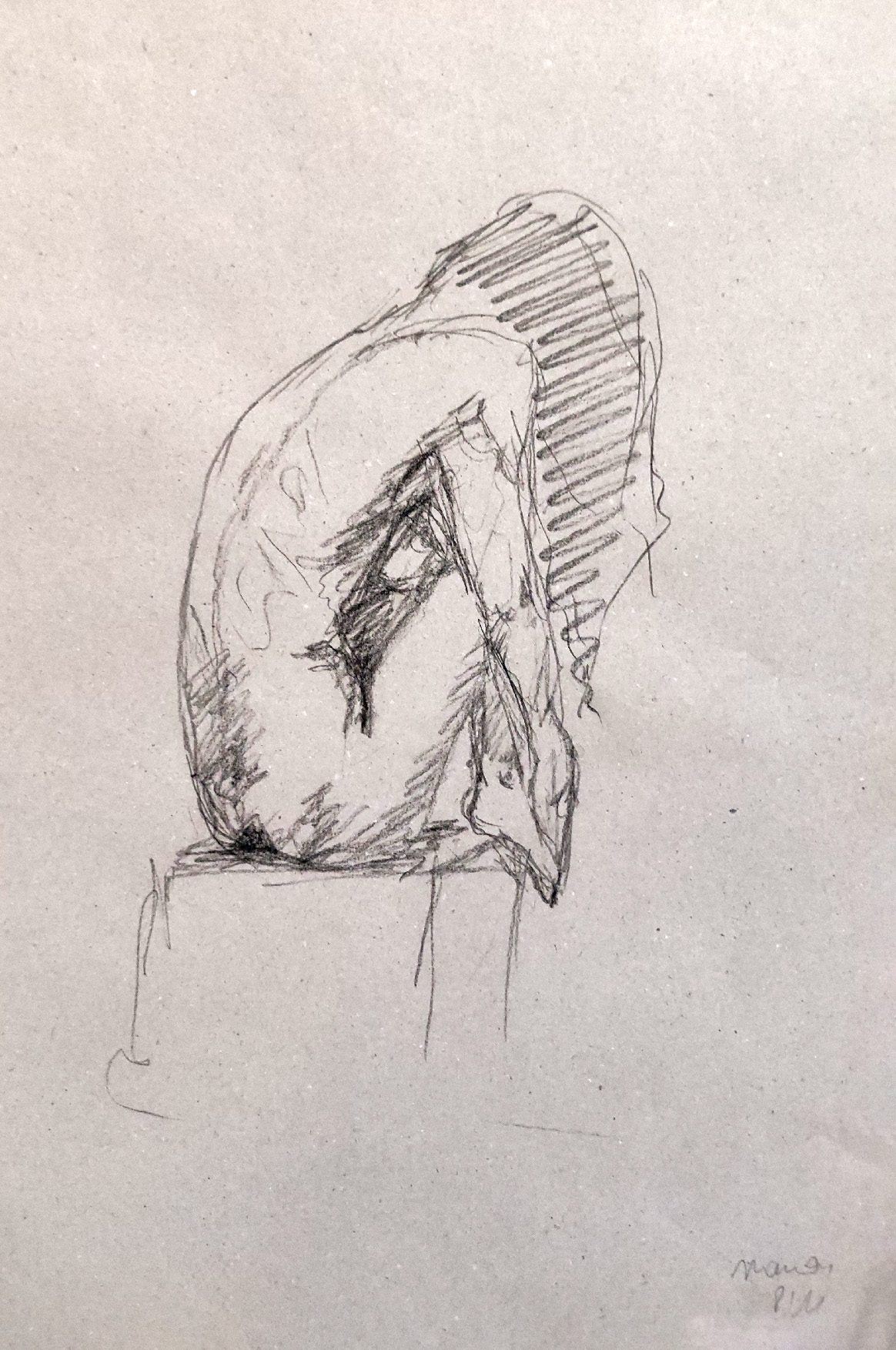 Depuis 2021, je participe à un atelier de dessins de modèles vivants tous les lundis. Selon un rituel bien calibré qui consiste à dessiner en 2, 5, 10, 15 ou 20 minutes, ce qui permet d’acquérir une forme d’automatisme et la rapidité de la prise de repères. Le lâcher prise est alors la règle, et la connexion totale avec le sujet dessiné.