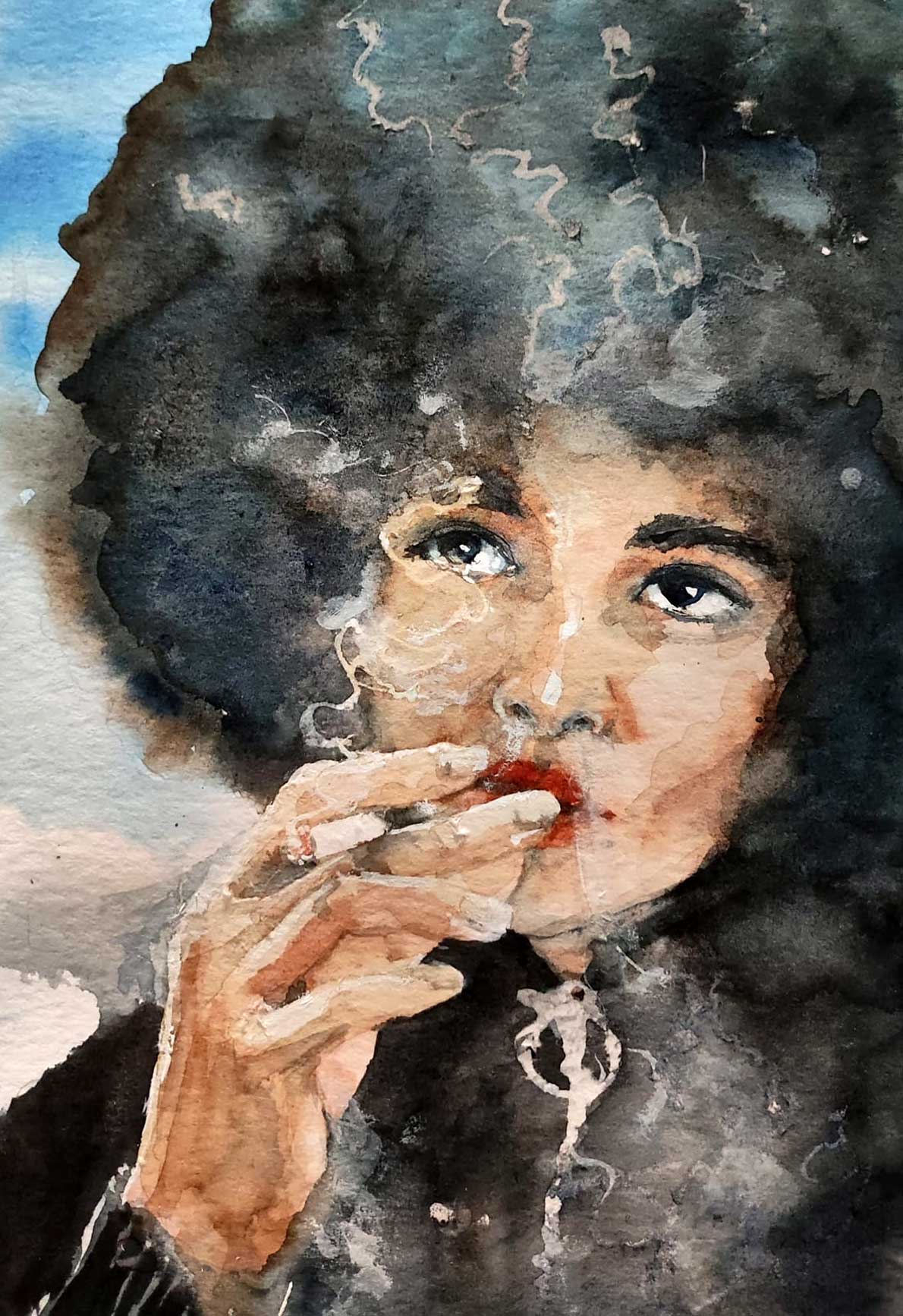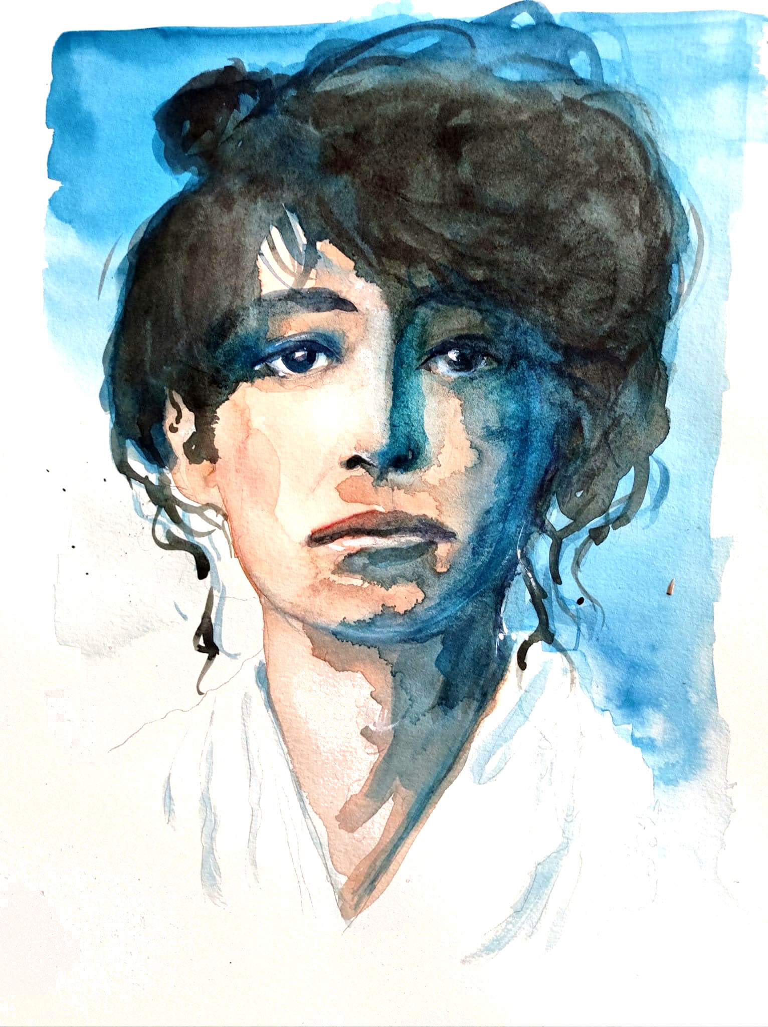 Pour réaliser ces portraits, j’ai pris pour références des photos en noir et blanc, parfois même des gravures ou bien encore des portraits à la peinture à l’huile. J’ai utilisé essentiellement les technique aquarelle humide et crayons de couleur.